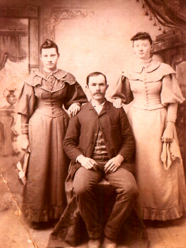 James Seaborn Sexton (1863-1936), the third son of Seaborn Sexton (1830-1862) and Louise Catherine Peace (1837-1926). The two women in this picture are not identified but are believed to be some of his Peace cousins. |